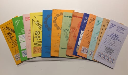 Een ander gegeven uit die eerste jaren is dat de opplakvellen aanvankelijk alleen “periodiek” konden worden ingeleverd. Spaarders kregen er dan geen korting voor terug, maar geschenken, zoals “een karpet, een bedstel, een radio of een keukenuitzet”. Later besloot men over te gaan op waardebonnen.